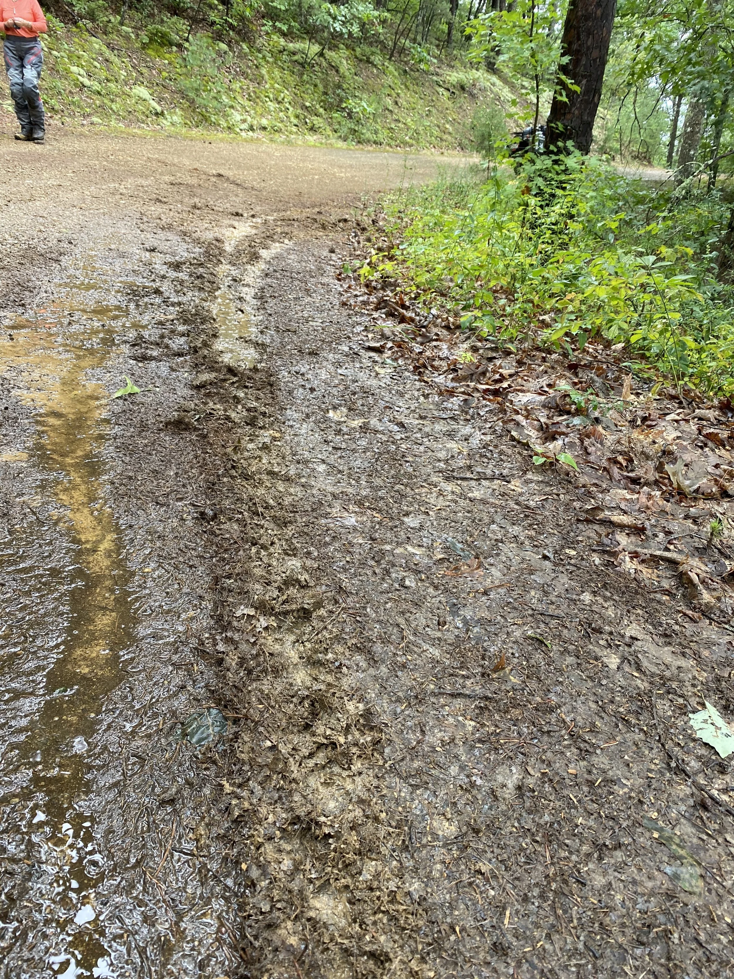 Lesson #2, it doesn’t matter how careful you are being, if you are riding in wet, slippery conditions, you are increasing the likely hood of crashing. Wet conditions on pavement, nice gravel roads where there is no mud, is much different then riding on a road that has variable conditions that includes patches of snotty mud.