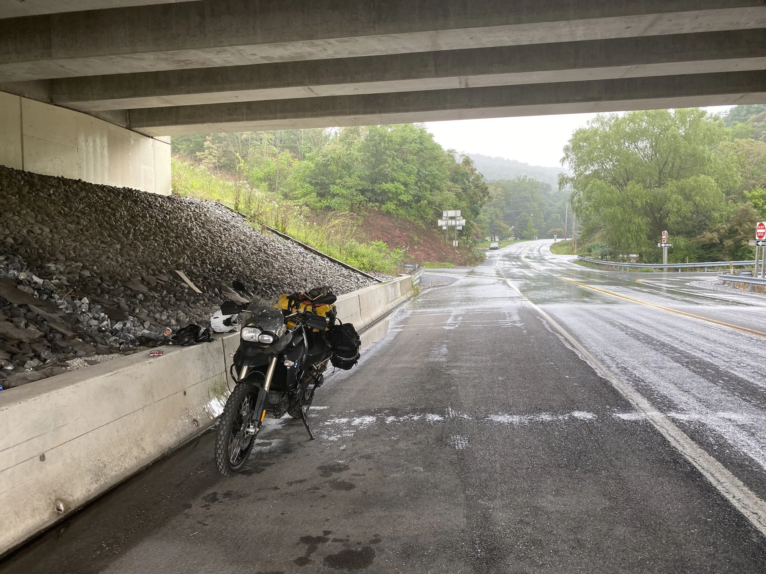 So, I’m headed north to go ride the NEBDR on a borrowed bike and in route, it’s pouring cats and dogs on the Interstate, and I see I can get some cover from an overpass where I can wait out the downpour as I was finding it very hard to see with the hard rains on top of the water that the other vehicles, especially the semis were throwing my way. As it often goes in the NE, it pours and then it will let up enough to get back out there, so off I go. Or so I thought… the bike won’t start! Battery was dead. (No, I did not leave the key on). Good thing I always carry a battery jumper and a tool bag. Still not a quick and easy thing to deal with. It takes a bit to remove the cover to the battery and then replace the cover, especially if you have to keep jumping the bike every time you turn it off.